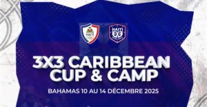 Après la FIBA 3×3 AmeriCup, prévue du 27 au 30 novembre 2025 à León, au Mexique, la Fédération Haïtienne de Basketball (FHB), à travers sa Commission Nationale de Basketball 3×3, vient d’annoncer une nouvelle invitation internationale de prestige : Haïti prendra part à la première édition du 3×3 Caribbean Cup, qui se tiendra du 10 au 14 décembre 2025 aux Bahamas.